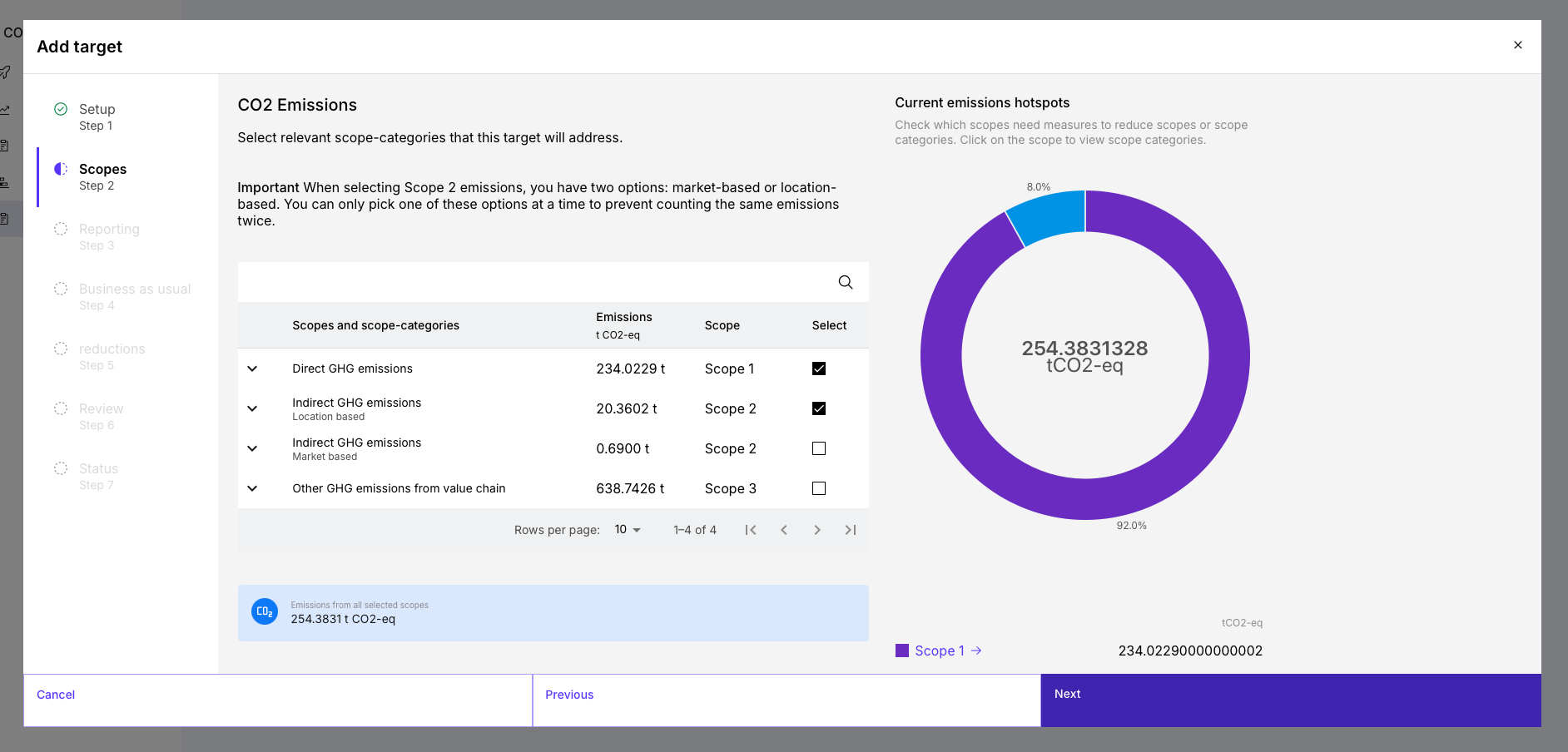 Im nächsten Schritt definieren Sie, welche Emissionen vom Ziel abgedeckt werden: