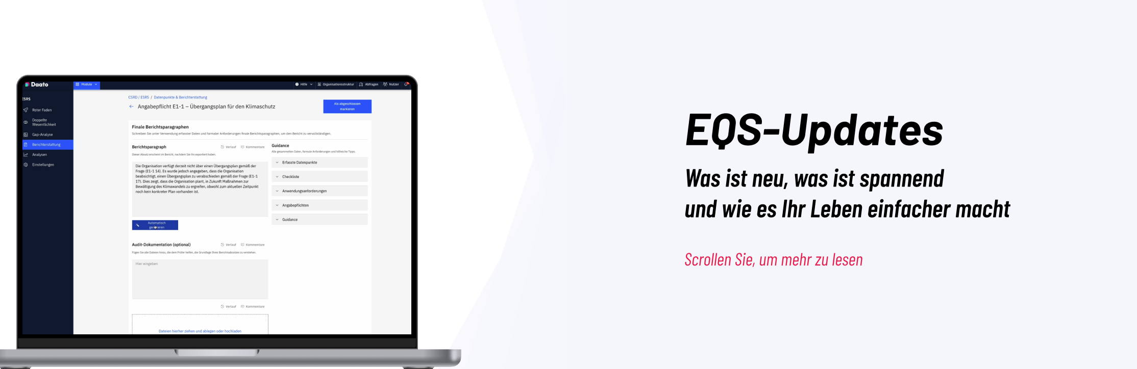 Wir werden die neuen Anforderungen in der EQS Plattform umgehend integrieren, sobald der Gesetzgebungsprozess abgeschlossen und alle Änderungen offiziell verabschiedet sind.