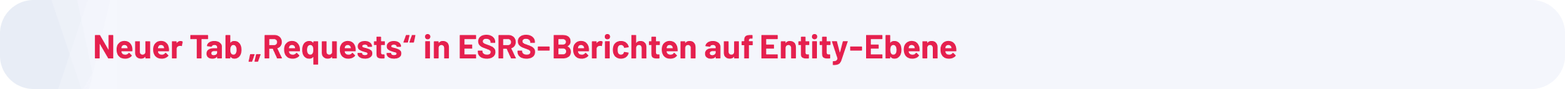 ESRS-Berichte auf Entity-Ebene enthalten jetzt einen eigenen „Requests“-Tab. Dieser Tab bündelt alle Datenanfragen im Zusammenhang mit dem Bericht, sodass Sie schnell sehen können, welche Stakeholder beteiligt sind, was noch aussteht und was bereits abgeschlossen wurde. Dadurch wird die Zusammenarbeit im Reporting-Prozess erleichtert.