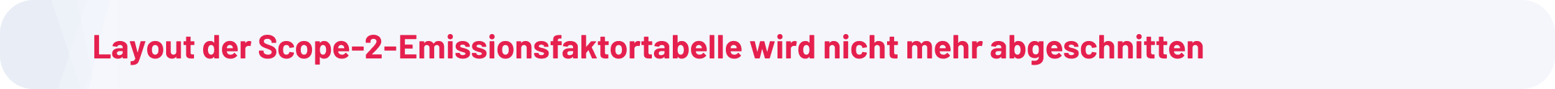 Das Tabellenlayout wurde korrigiert, sodass nun alle Einträge der Emissionsfaktoren vollständig sichtbar sind, was die Lesbarkeit verbessert und Fehlinterpretationen von Emissionsdaten reduziert.