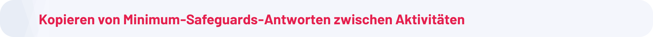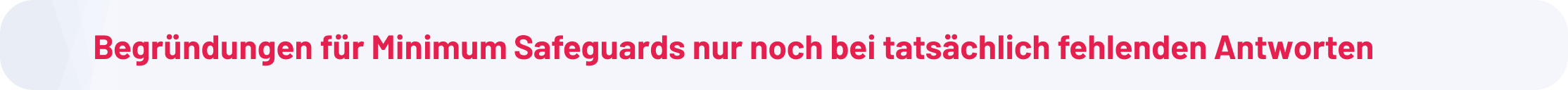 Dieser Fehler wurde behoben, sodass bestehende Antworten für Minimum Safeguards wieder zwischen Aktivitäten übernommen werden können, was Zeit spart und konsistente Antworten unterstützt.