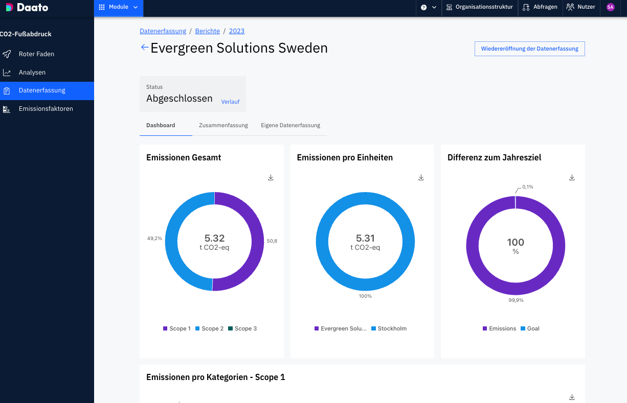 When you click on this next higher entity, you will see the following page with a dashboard, a data summary, and the option to enter additional data at this level.