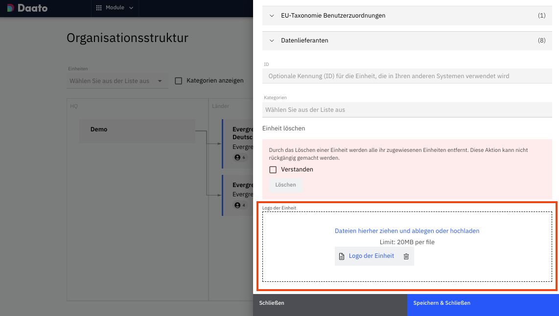 Here you can upload a logo for each unit. This will then be displayed in queries, e.g., to suppliers, as part of the email, allowing recipients to immediately understand which unit the query is coming from.