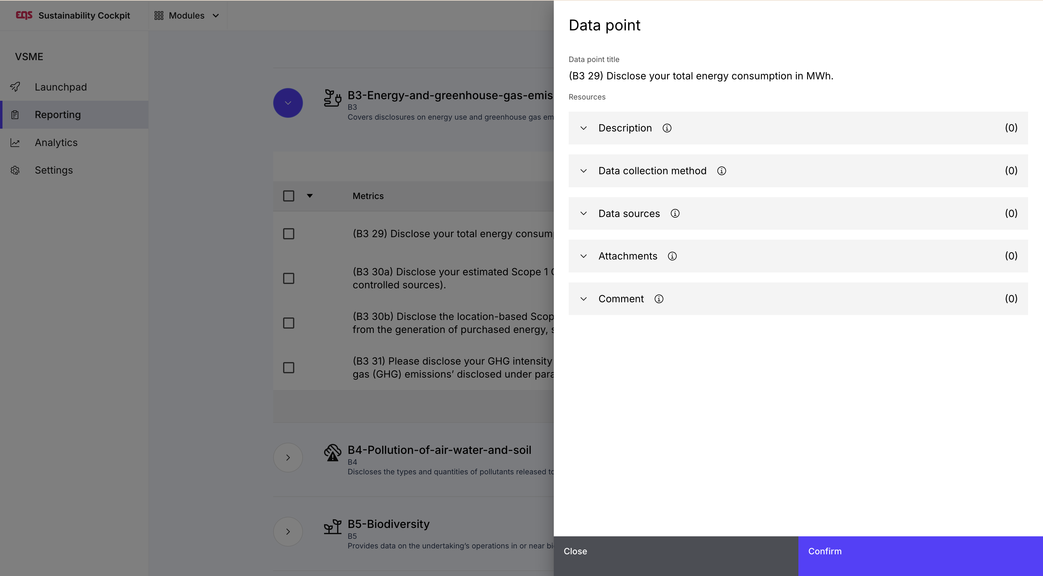 Manual data collection means that you either (1) open a data point and answer it yourself or forward it to a colleague, or (2) use our collaboration feature to collaborate with selected experts.