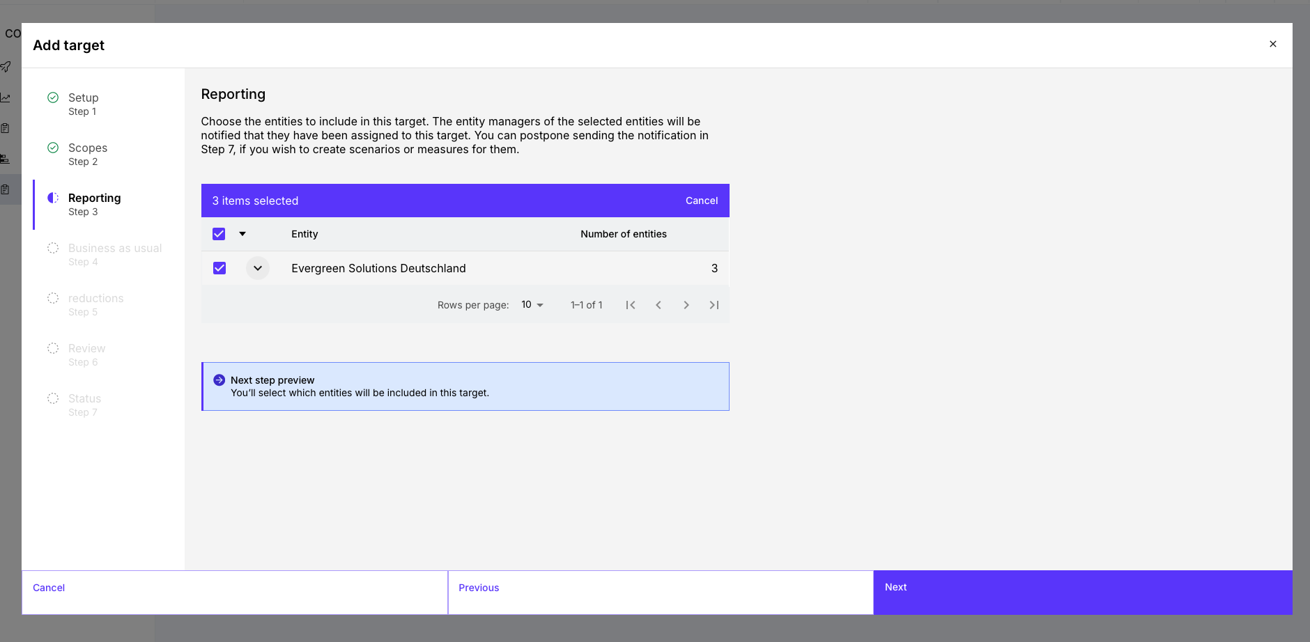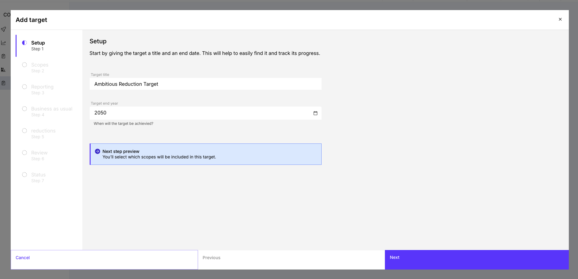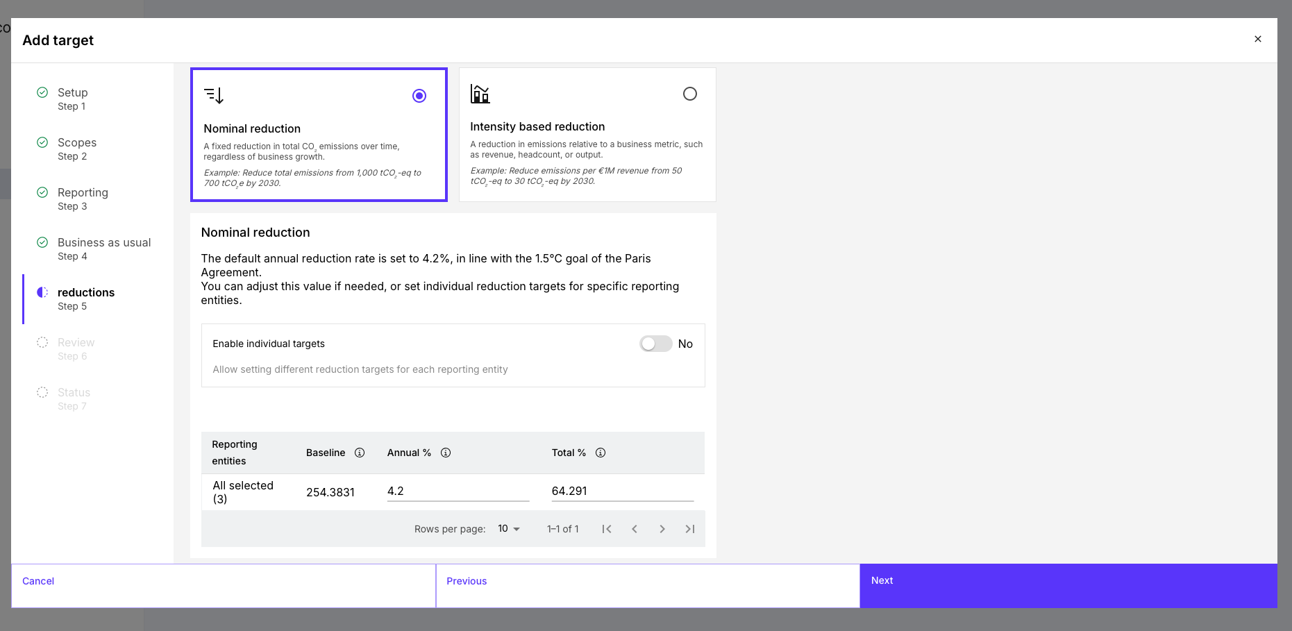 In the Reduction Planner, target setting follows a structured process.