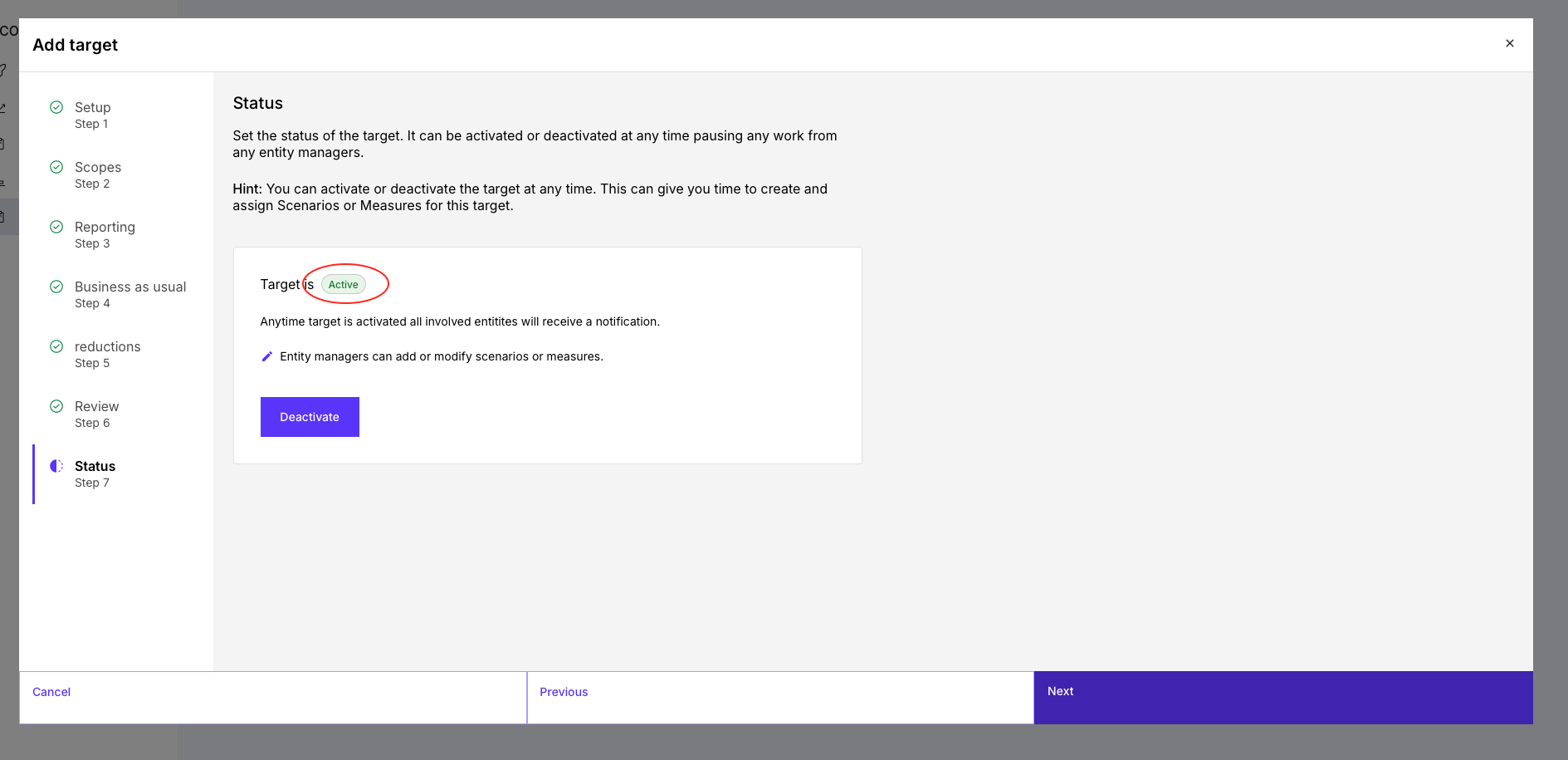 - Deactivate → target is paused
