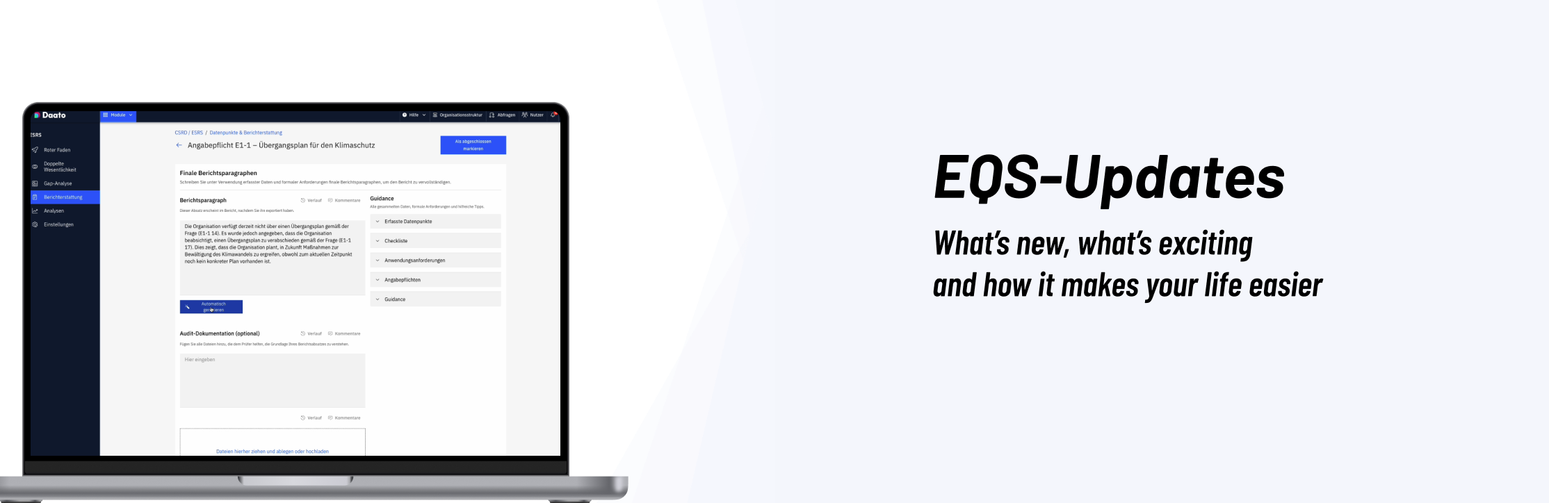 In ESRS Step 3, the status and completion percentage of table data points now accurately reflect the current content. When values are cleared from a table, the status and completion automatically reset to “not completed”, and entering new values again works reliably without needing to refresh or reopen the table. This ensures that completion indicators stay in sync with the actual data and prevents data from silently failing to save.