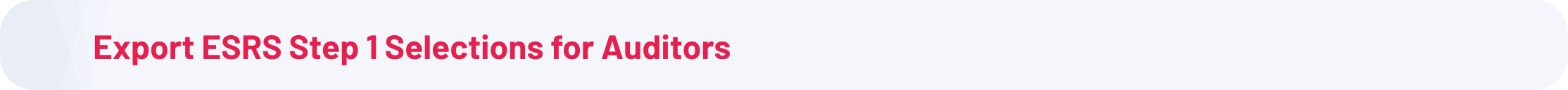 Auditors, ESRS Module Managers, and Admins can now export the full configuration of Step 1 (Disclosure Requirements and Data Points) of an ESRS report to Excel using a new “Export Step 1 selections” option. The export includes which DRs and DPs are in scope, which ones are excluded, and for each exclusion both the reason (e.g. non‑material, phase‑in provision, voluntary) and the written justification. This makes it easier for auditors to review scoping decisions in their own tooling.