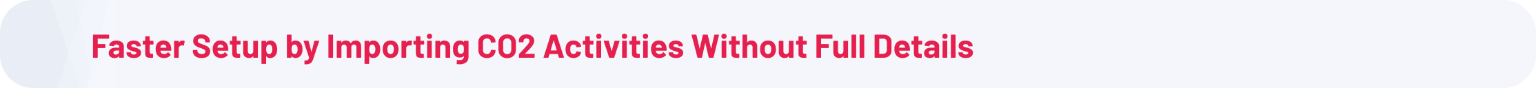 When importing CO2 activities for an entity, you can now upload rows containing just the activity name and scope without triggering errors. These activities are created without an emission factor and without emissions calculated, ready for you to complete later using Smart Search. This supports workflows where you first load a rough activity list and refine the details afterward.