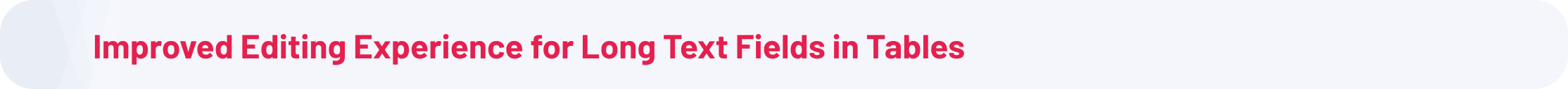 For collapsible table data points, top‑level text fields now automatically expand into multi‑line long‑text inputs once the content exceeds a single row. When viewing saved values, the displayed field size adapts to the amount of text. This makes it easier to enter and review longer narratives without constant scrolling or cramped fields.