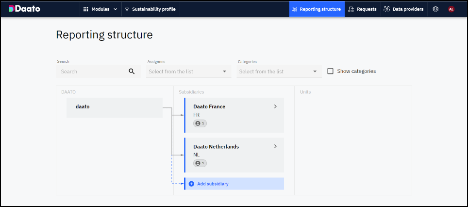 Antes de poder reportar las emisiones de carbono de tu organización, necesitas poblar tu estructura de informes con las diferentes entidades y su jerarquía.