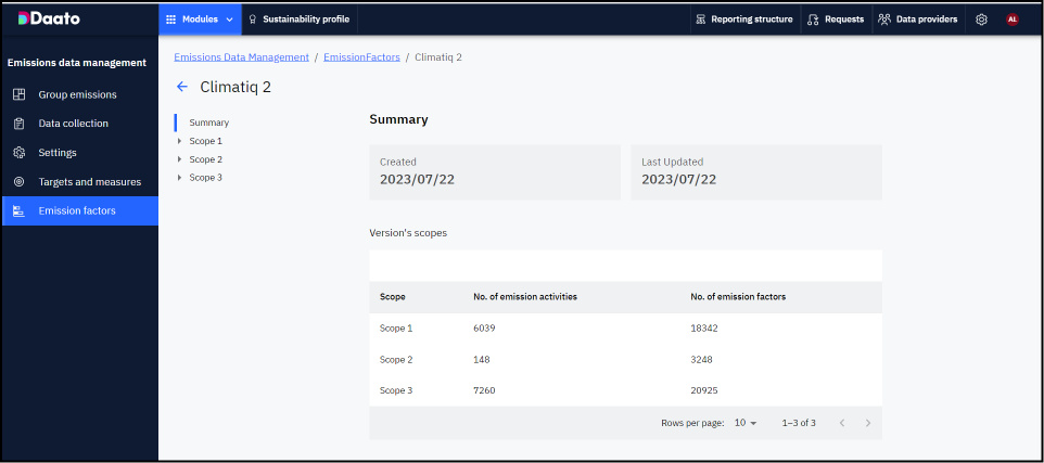 Algunas versiones base, proporcionadas por nuestro socio Climatiq, ya están incluidas en la herramienta.