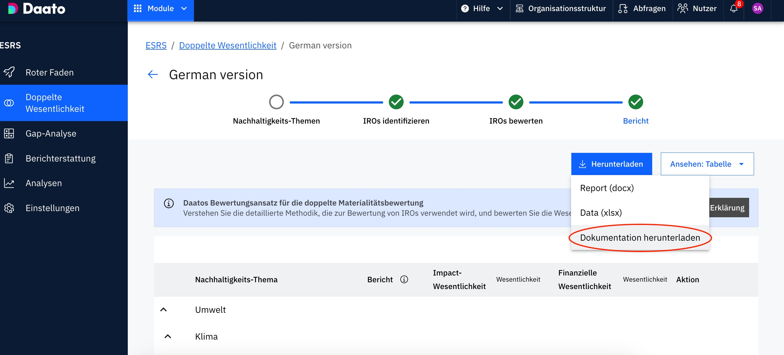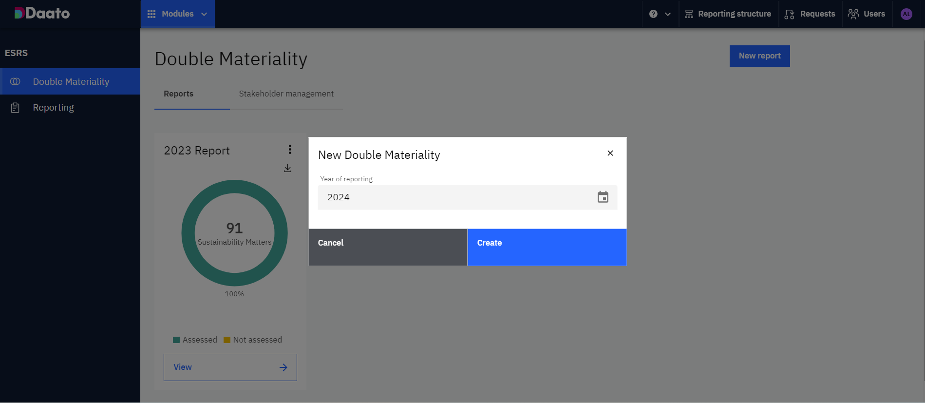En Daato, existen dos opciones para crear una evaluación de doble materialidad: