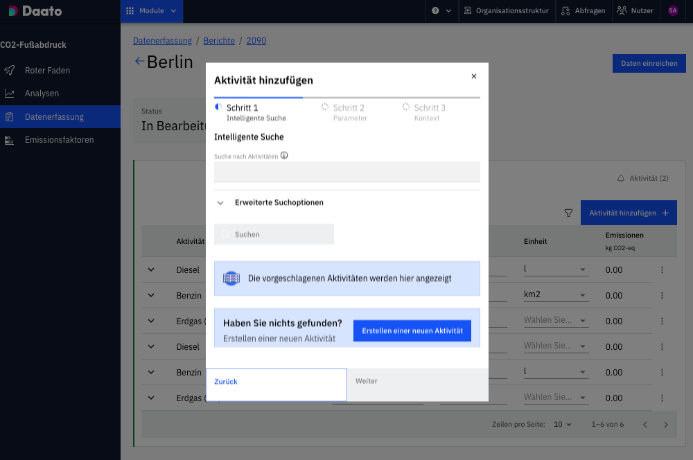 Daato sugerirá las actividades más relevantes y sus factores de emisión.