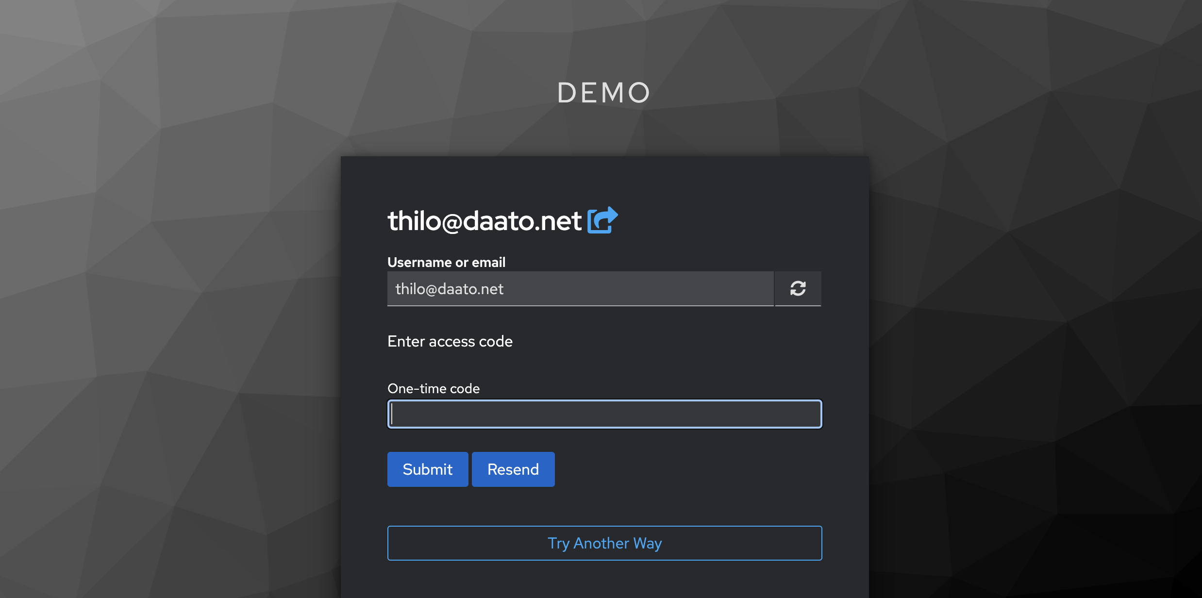 Si se selecciona la opción de código de un solo uso, se enviará un código al correo electrónico del usuario.