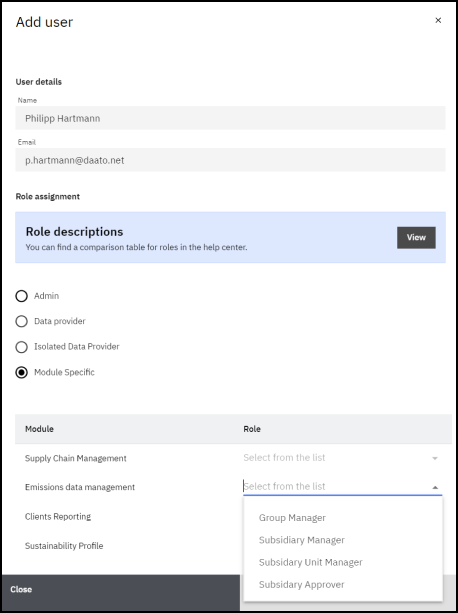 Une fenêtre apparaîtra à droite, vous permettant de sélectionner le nouveau rôle à attribuer à l’utilisateur concerné.