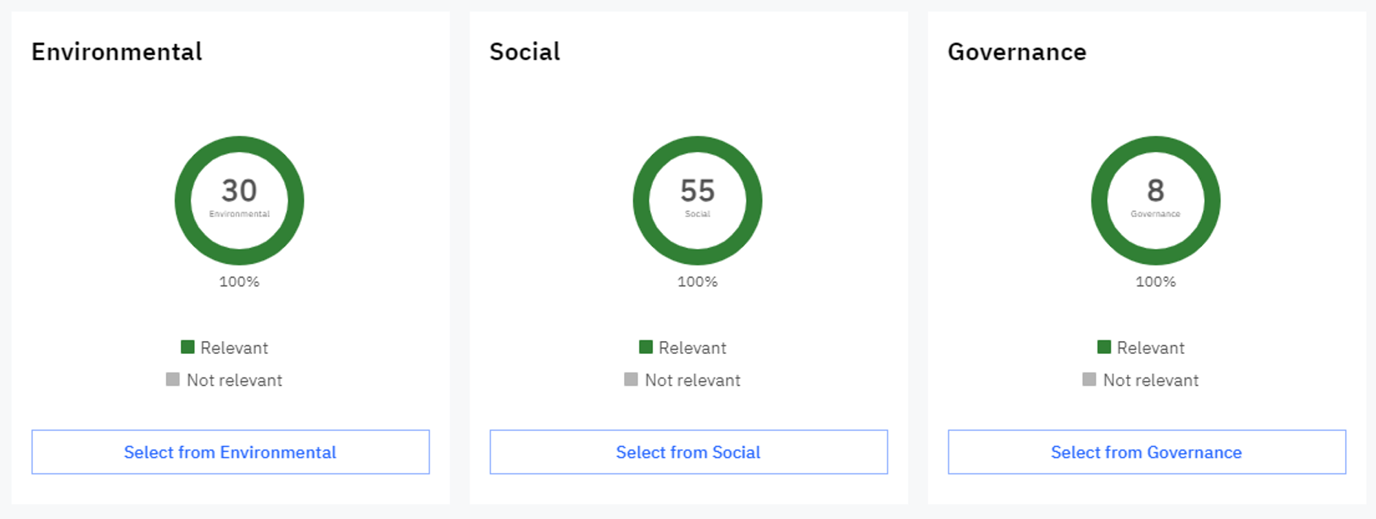 Accédez à la liste des sujets de durabilité en sélectionnant la catégorie ESG concernée :