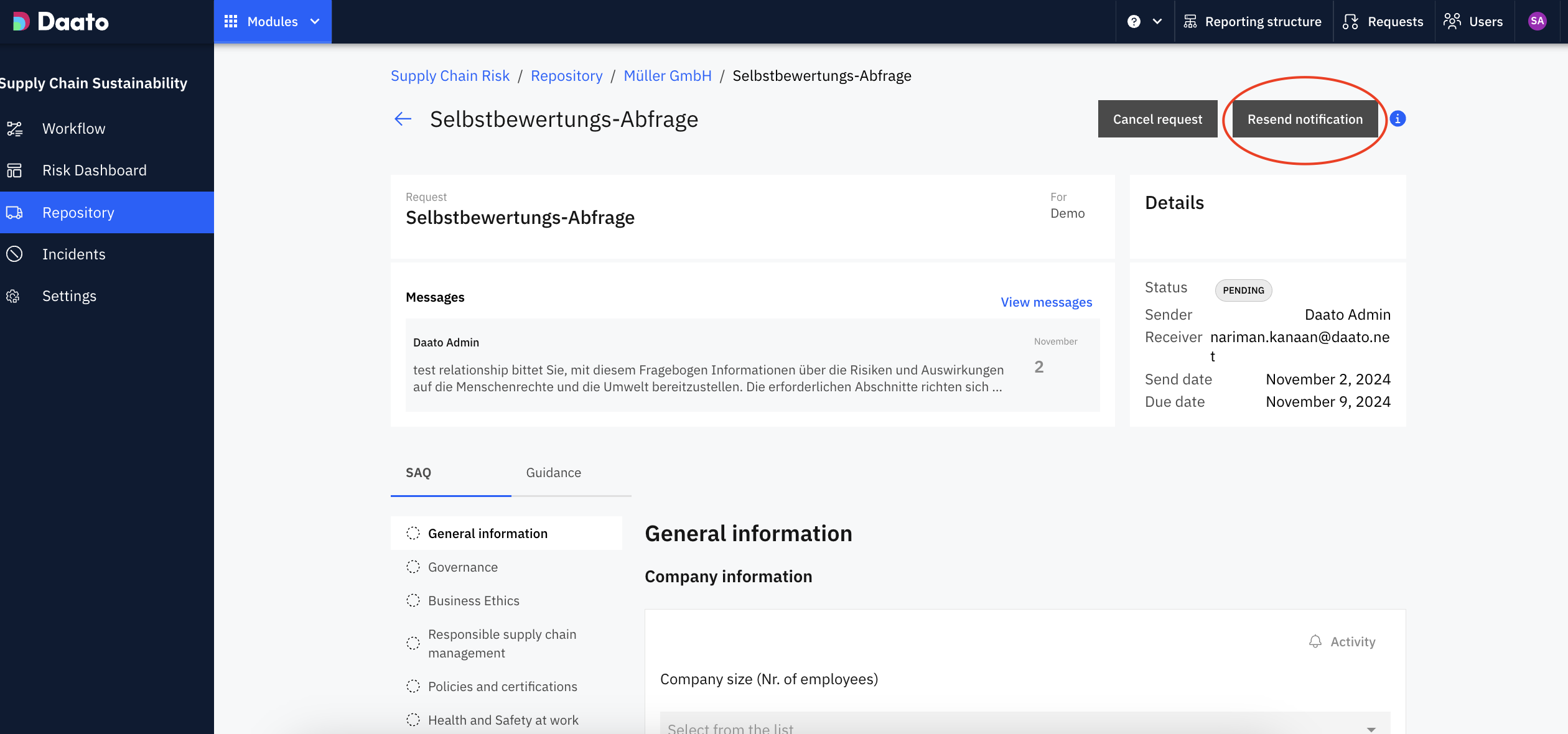 Ouvrez la demande que vous aviez envoyée à ce destinataire.