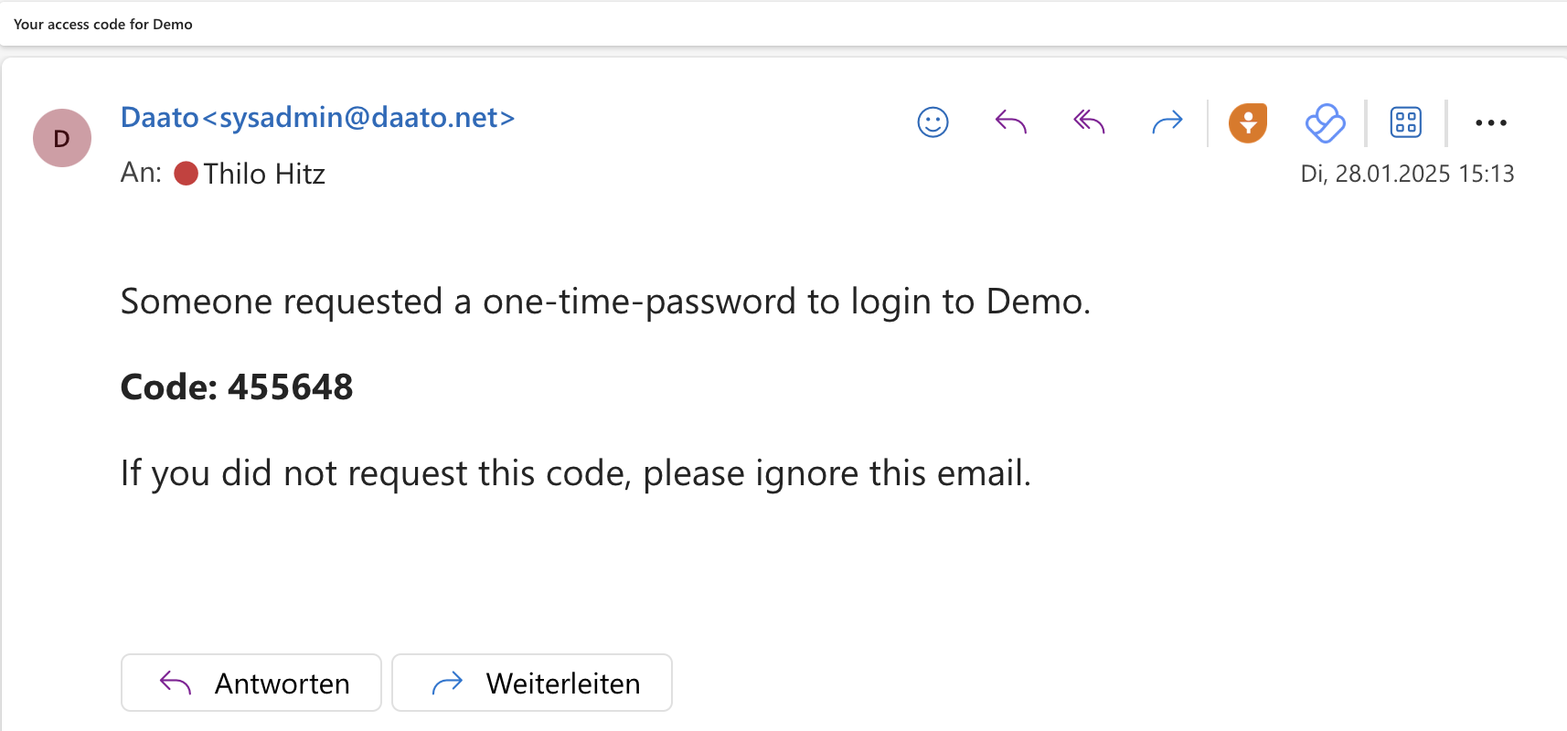 Le message rappelle également que l’adresse e-mail d’invitation doit être utilisée pour se connecter à la page d’accueil Daato mentionnée dans le lien.