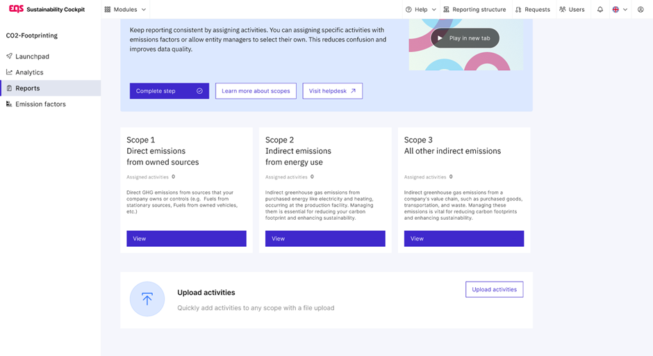 L'étape 2 du nouveau flux de travail de reporting CO₂ permet aux gestionnaires de modules de prédéfinir des activités spécifiques pour leurs entités, garantissant ainsi un processus de collecte de données structuré, cohérent et simplifié.