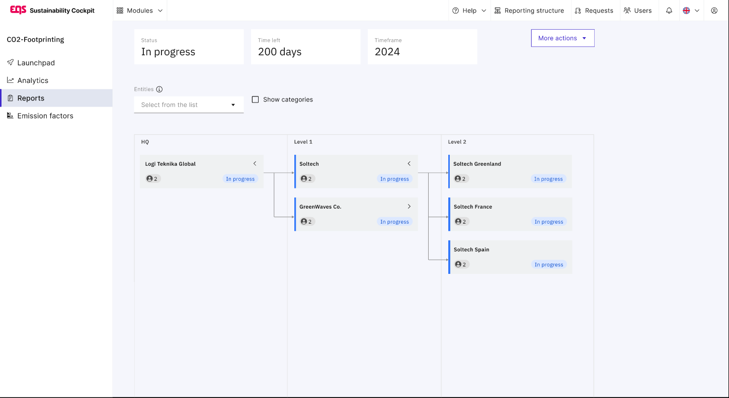 Vue à l'échelle de l'organisation : suivez facilement la progression de la collecte de données par chaque entité, permettant une identification rapide des soumissions terminées ou en attente.