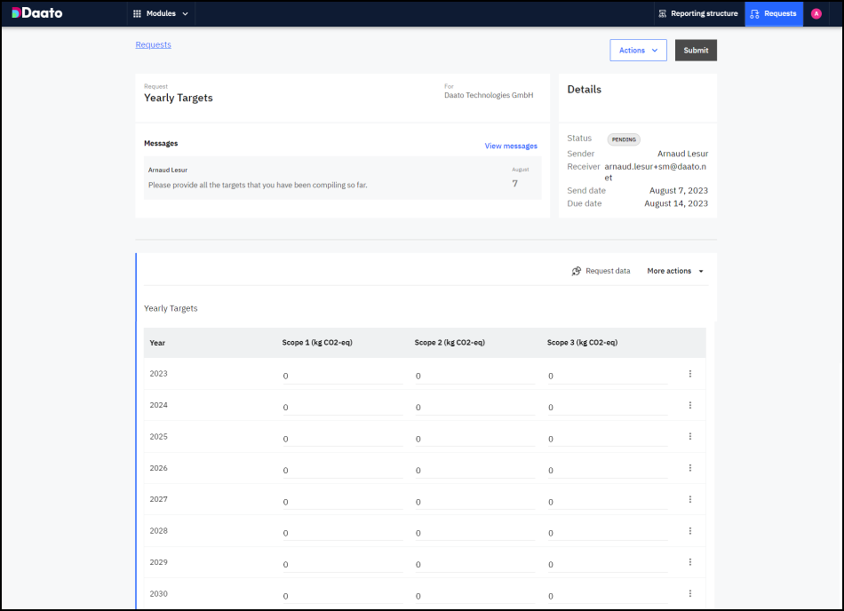 A kérés oldalán töltsd ki a kért adatpontokat.Megjegyzés hozzáadása (opcionális)