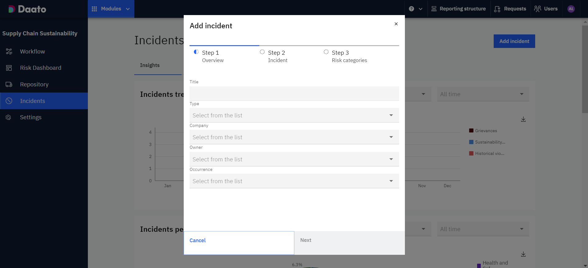 Az események érkezhetnek médiafigyelésből vagy a bejelentőcsatornáról, de manuálisan is felvihetők, ha tudomást szerzünk beszállítói jogsértésről.