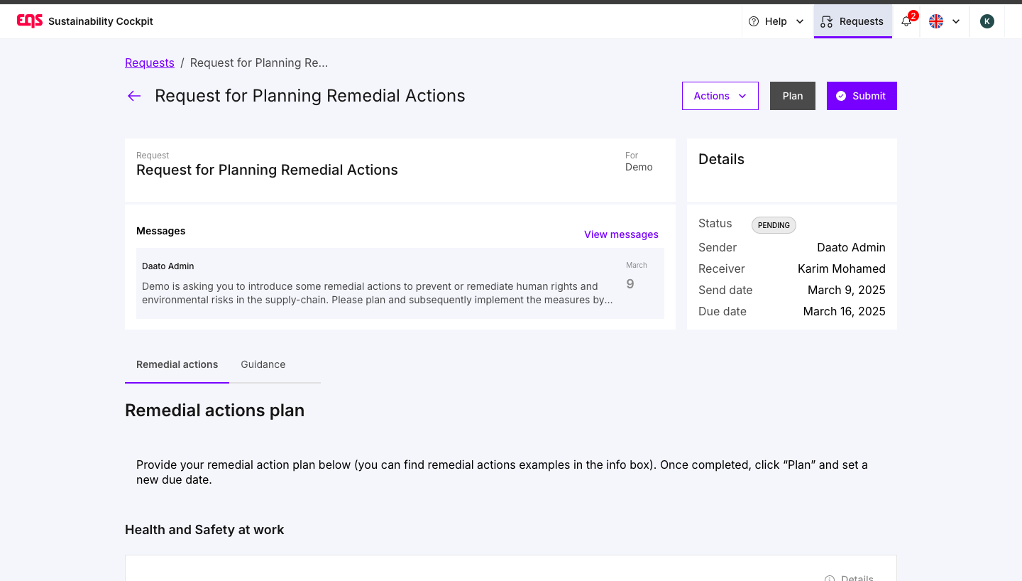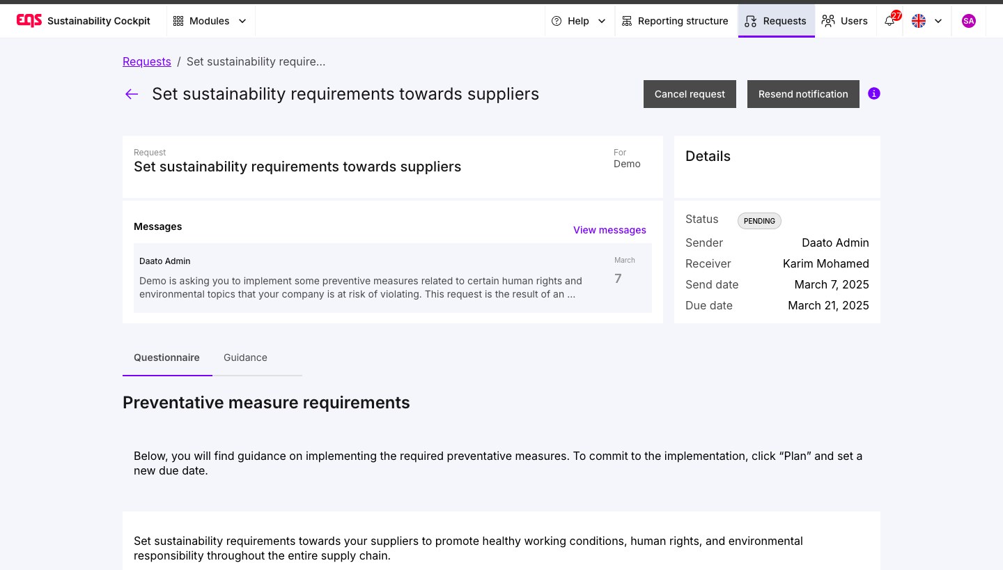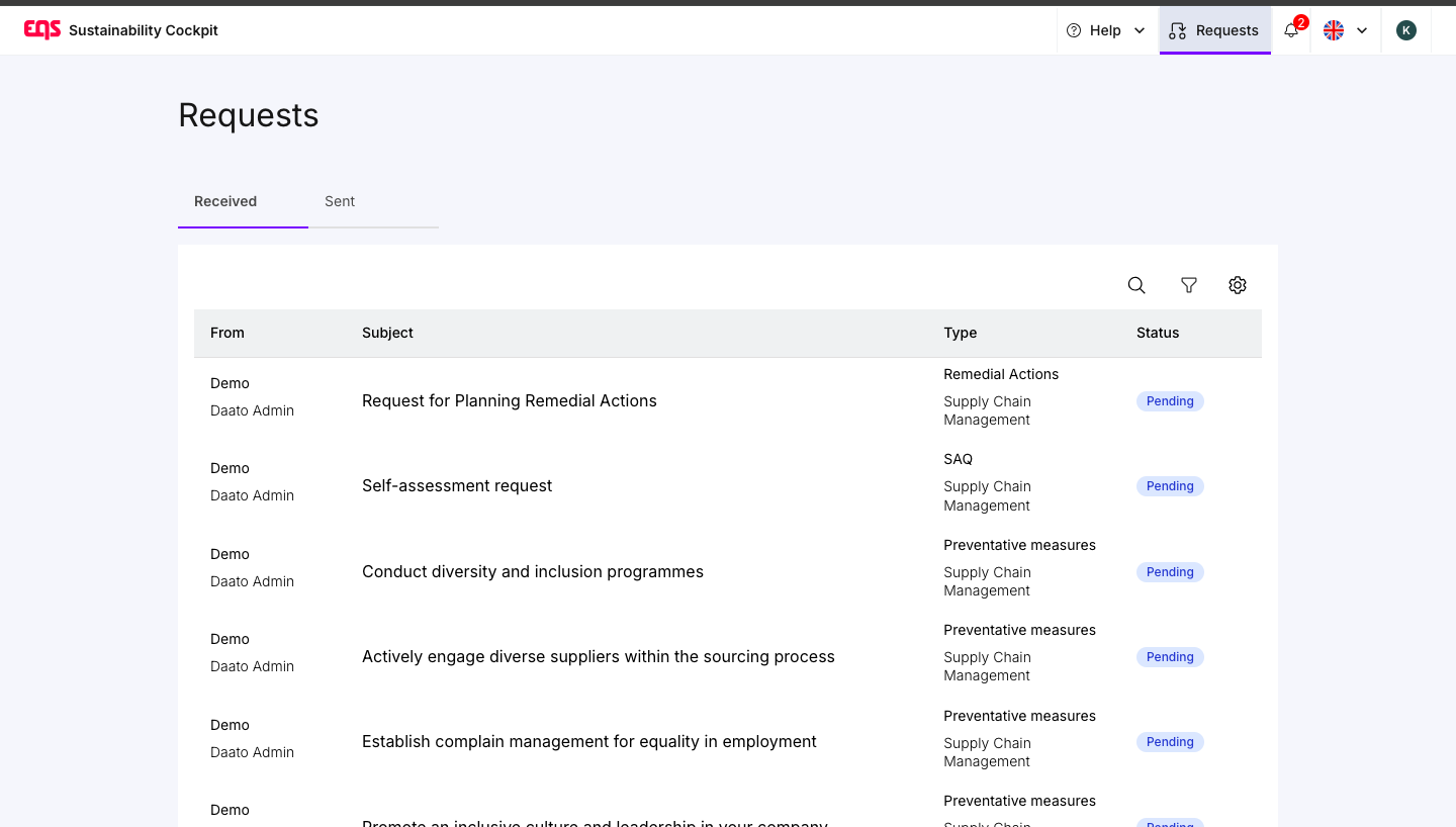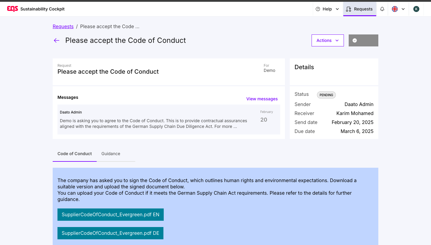 Útmutató a kérések kezeléséhez az EQS Sustainability Cockpit – Ellátási láncfenntarthatósági modul