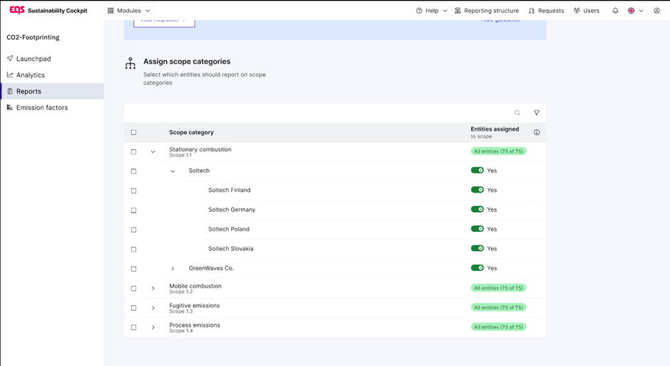 A 3. lépésben strukturált képet kaphat arról, hogyan haladnak az entitásai az adatbevitellel. Ez a lépés az egyes entitások és a hozzájuk tartozó kibocsátások szerinti rendezett lebontást, teljesen megfelelve az ÜHG Jegyzőkönyv követelményeinek.