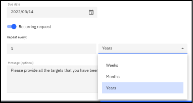 Hai anche l’opzione di aggiungere una ricorrenza alla richiesta, ad esempio se sai che chiederai gli stessi dati ogni anno, puoi già automatizzare il processo.