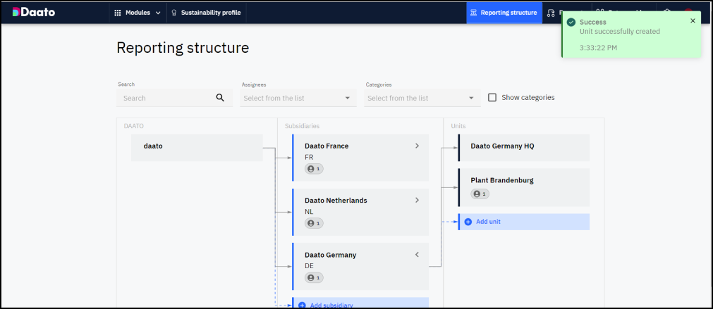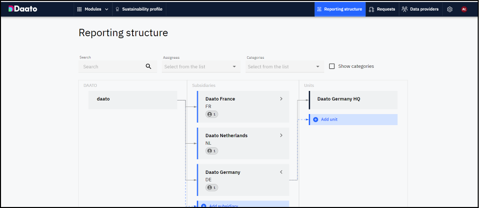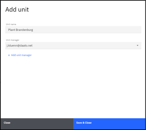 Inserisci il nome dell’unità e, facoltativamente, il responsabile del suo reporting delle emissioni di carbonio.