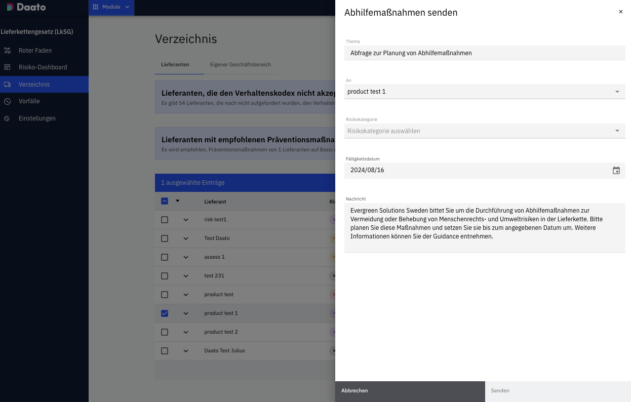 Se sono stati individuati dei rischi o se sono imminenti, è necessario prevenirli, arrestarli o ridurli. Con Daato, si possono richiedere azioni correttive.