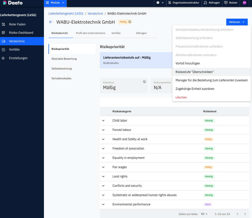 Cliccate su Azioni → Sovrascrivi livello di rischio.
