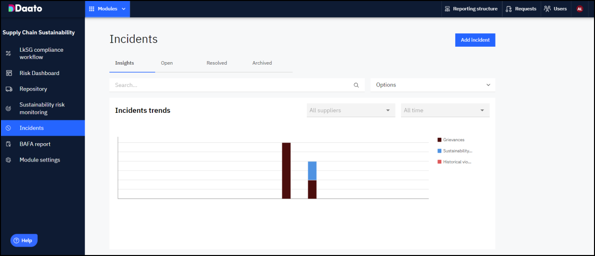 Gli incidenti possono arrivare dal media monitoring o dal canale whistle-blower, ma potete crearne uno non appena venite a conoscenza di una violazione da parte di un fornitore.