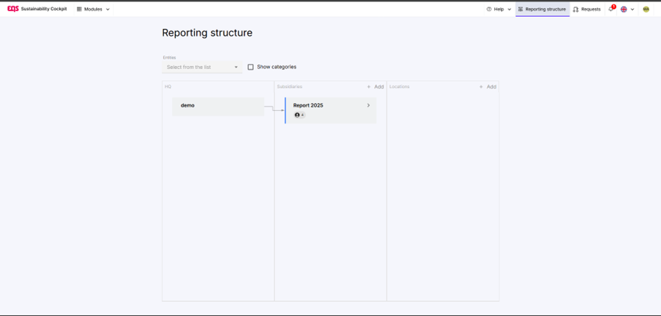 Il gestore dell'entità CO2 può visualizzare la propria struttura di reporting, ma non può apportare modifiche.
