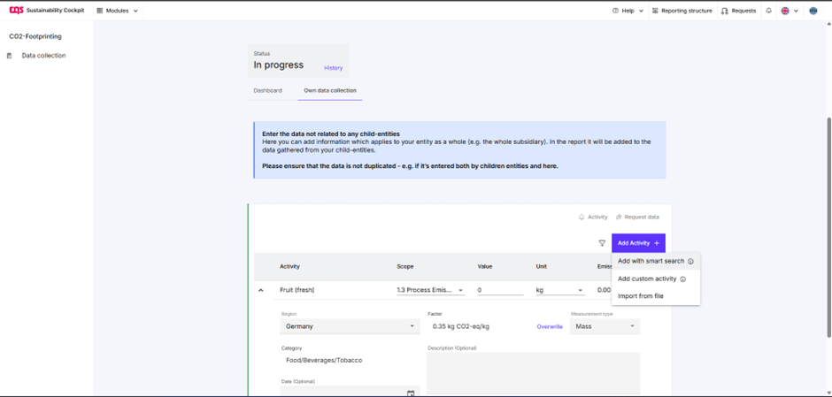 - Compilare qualsiasi punto dati per le entità a cui l'utente è assegnato come CO2 Reporting Manager
