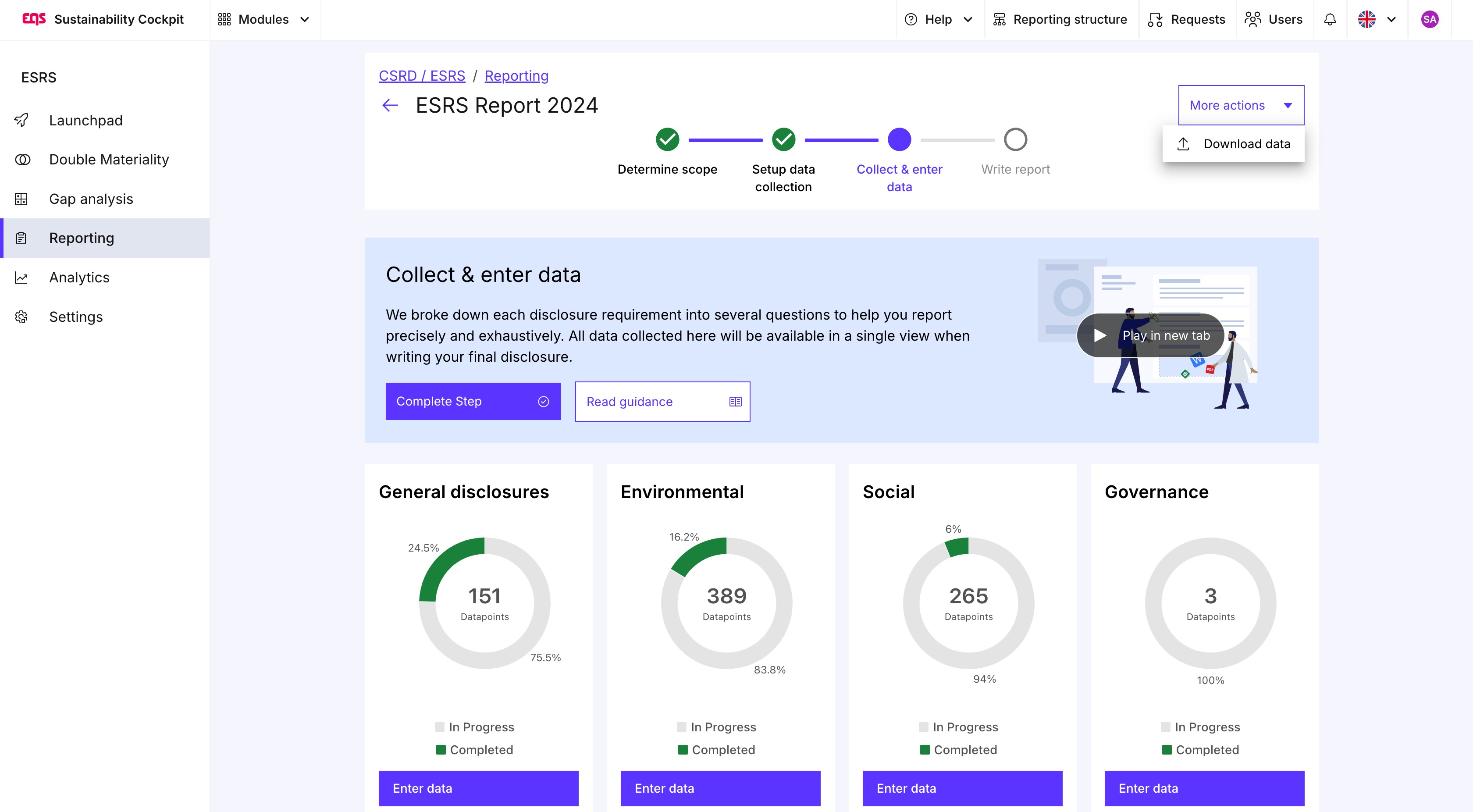Seleziona i requisiti di rendicontazione specifici e i punti dati che desideri esportare. Puoi scaricare fino a 50 punti dati alla volta. Conferma la tua selezione cliccando su "Invia".
